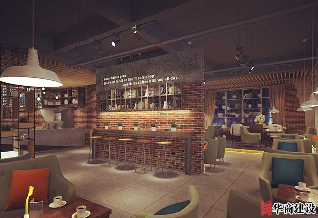 整個咖啡館室內設計沿用了工業風的設計手法,氧化鐵的火磚是咖啡館室內設計的一大亮點,象征著拼搏、激情,這樣的裝修方式幾乎運用于所有墻面,但在室內柱子只是用水泥砂漿稍作處理,這樣使得室內環境十分融洽,不多不少。