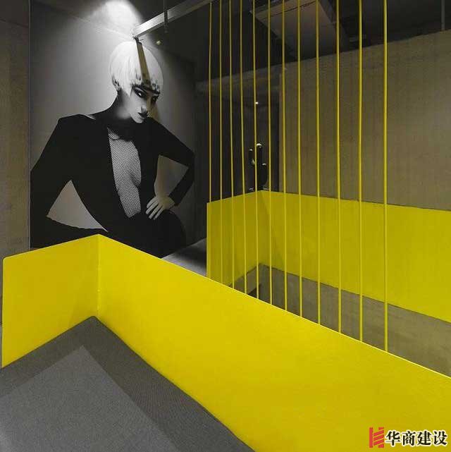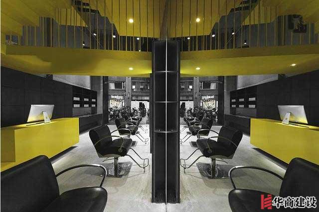 經典美發店裝修案例,黑黃顏色搭配層迭空間