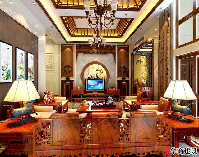 客廳裝修,選用名貴原木襯托家裝的東方韻味,華貴大氣,栩栩如生的木雕工藝,道出中式潛藏的內(nèi)涵美。