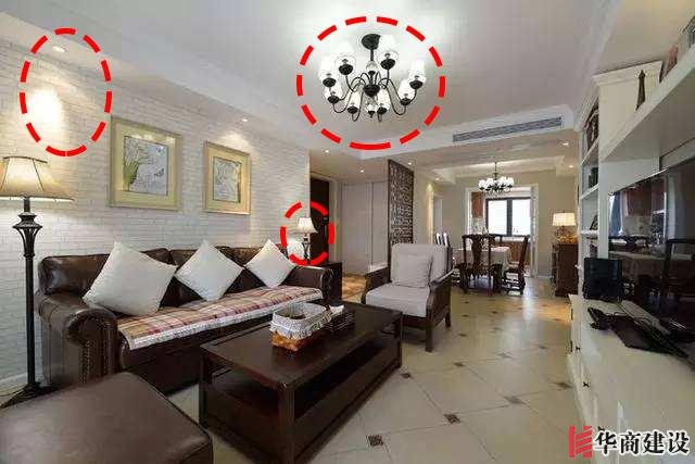5、客廳的燈光源,建議大家在裝修的時候,要是裝多個等,建議不要一個系列的,最好白光與黃光結合,這樣才會營造出氣氛。