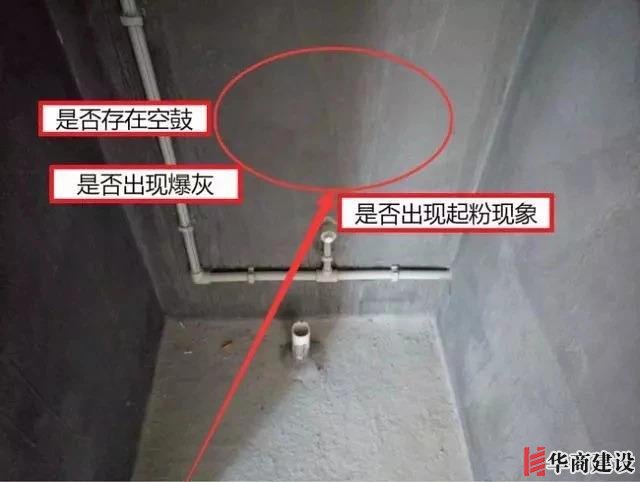 用小錘輕敲墻面進行檢查。此外,還要檢查墻面是否有爆灰、起粉等現象。