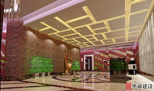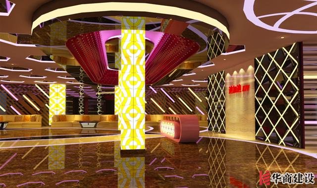 從圖片中可以看出來整體的設計主要是以時尚為主,交相輝映的燈光,加上悅耳動聽的歌聲,帶動了人們那一顆蠢蠢欲動的心,這樣絢麗的大廳設計一下子讓人進入角色中,可以很好的調動人們的積極性,讓消費者無比期待!