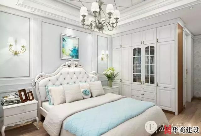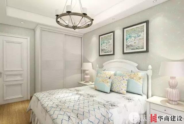 淡藍色和白色調很好搭配,顏色的變化讓空間更加豐富有層次,粉藍色系的背景墻很有亮點。臥室雖然整體是白色的,但是添加上一些淡淡的搭配色,會變得格外的溫馨。